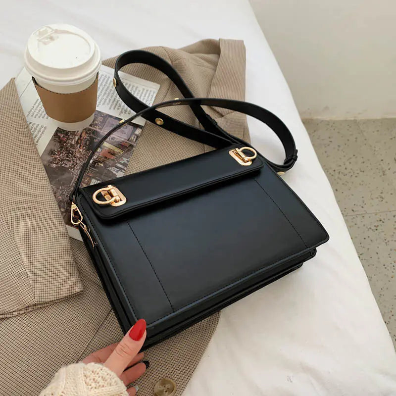 Master the art of timeless accessorizing with the Heritage Crossbody Shoulder Bag, a centerpiece of the Luxe Symmetry collection that harmonizes vintage inspiration with modern urban utility. This structural masterpiece is meticulously crafted from high-caliber, reinforced PU material, offering the luxurious look and tactile feel of premium leather with enhanced durability and ease of maintenance. The bag features a clean, rectangular silhouette defined by its distinctive flap closure and polished gold-tone hardware, providing a sophisticated focal point for any ensemble. Its thoughtfully designed interior provides ample volume for daily essentials without compromising its streamlined, compact profile. Engineered for versatility, the adjustable broad strap allows for a seamless transition from a classic shoulder bag to a contemporary crossbody underarm carry. Available in an essential palette of deep Noir and rich Mahogany, this bag is the definitive accessory for the discerning individual, designed to elevate a casual daytime look or serve as a polished anchor for evening attire.